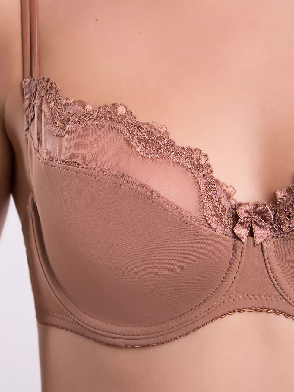 Бюстгальтер: гладкий бюст с ажурными вставками.