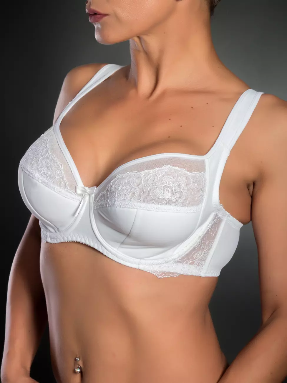 Бюстгальтер: гладкий бюст с ажурной вставкой.