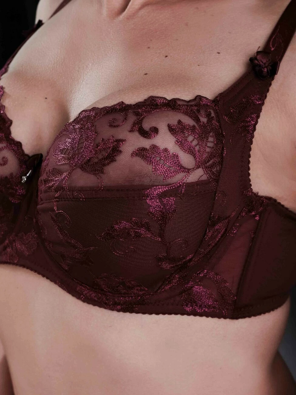 Бюстгальтер: гладкий бюст с вышивкой на чашке.