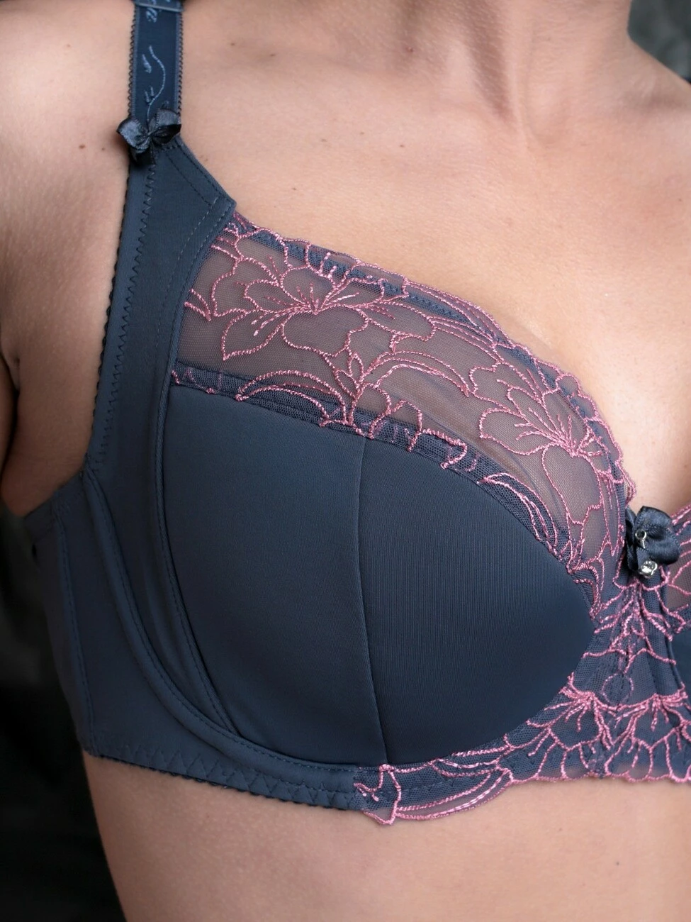 Бюстгальтер: гладкий бюст с кружевными вставками.