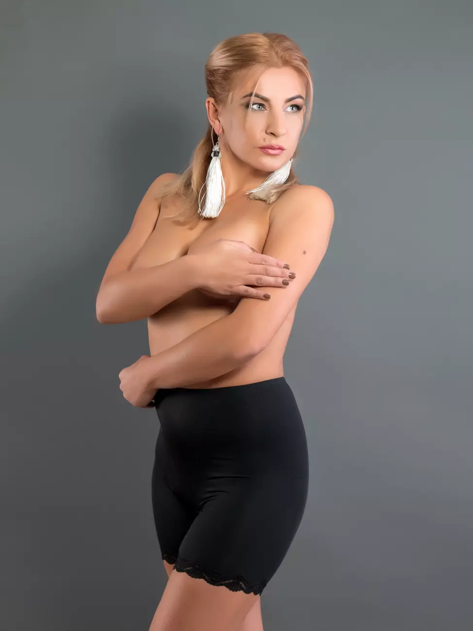 Трусы: гладкие панталоны, внизу ажурные.