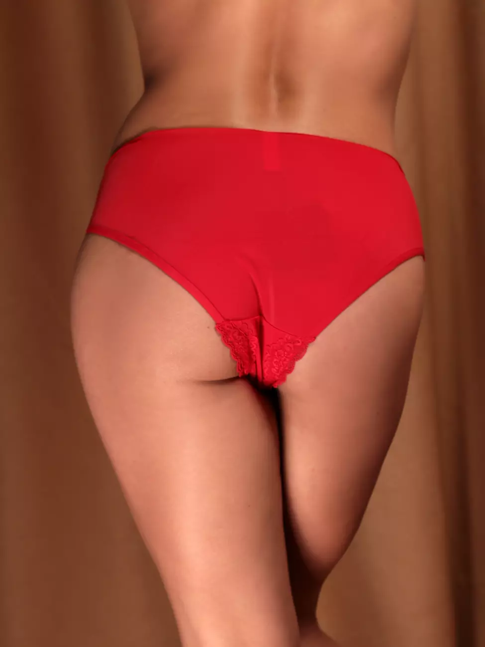 Трусы: гладкие закрытые слипы с кружевными вставками.