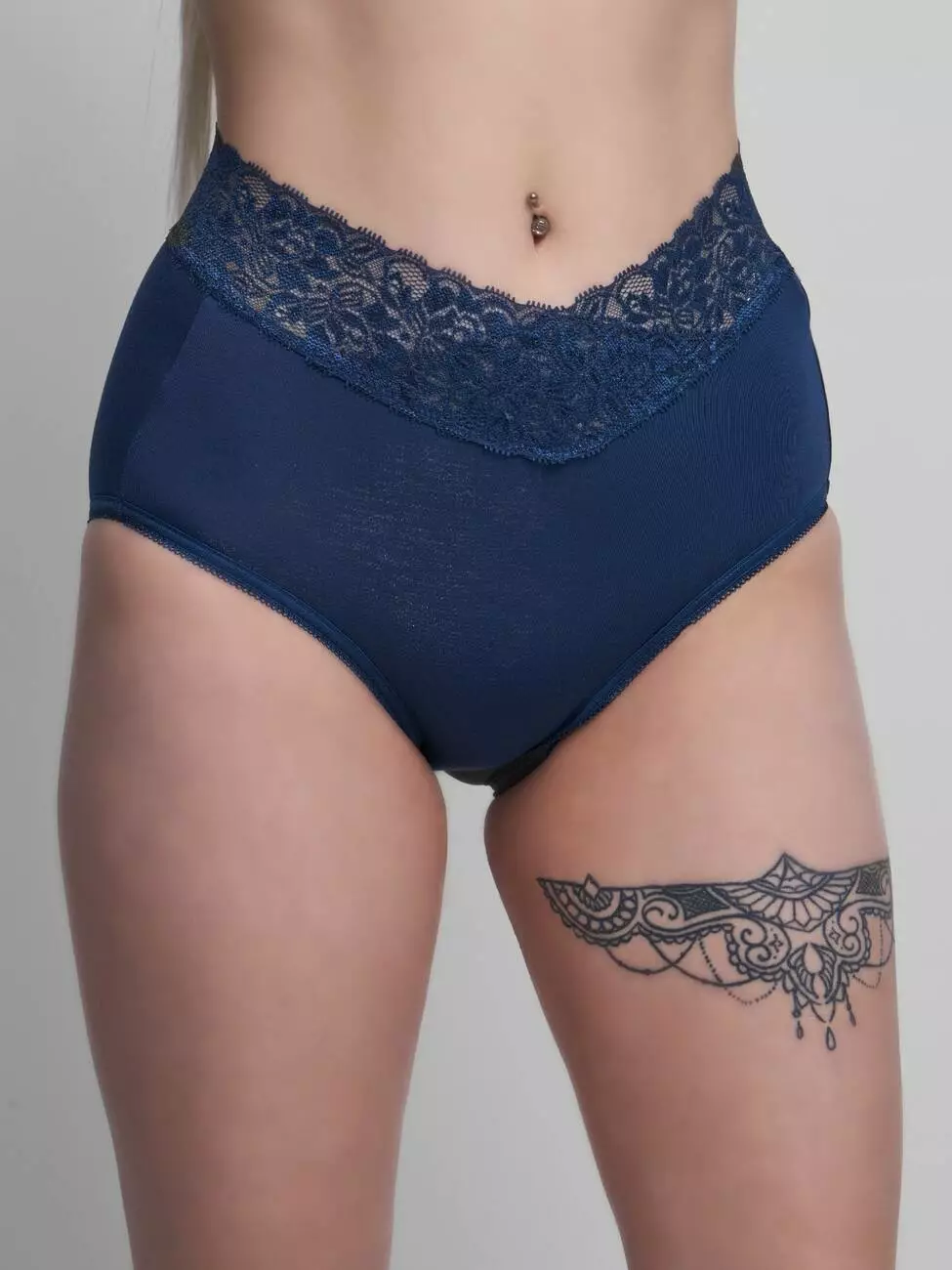 Трусы: гладкие слипы с кружевной резинкой.