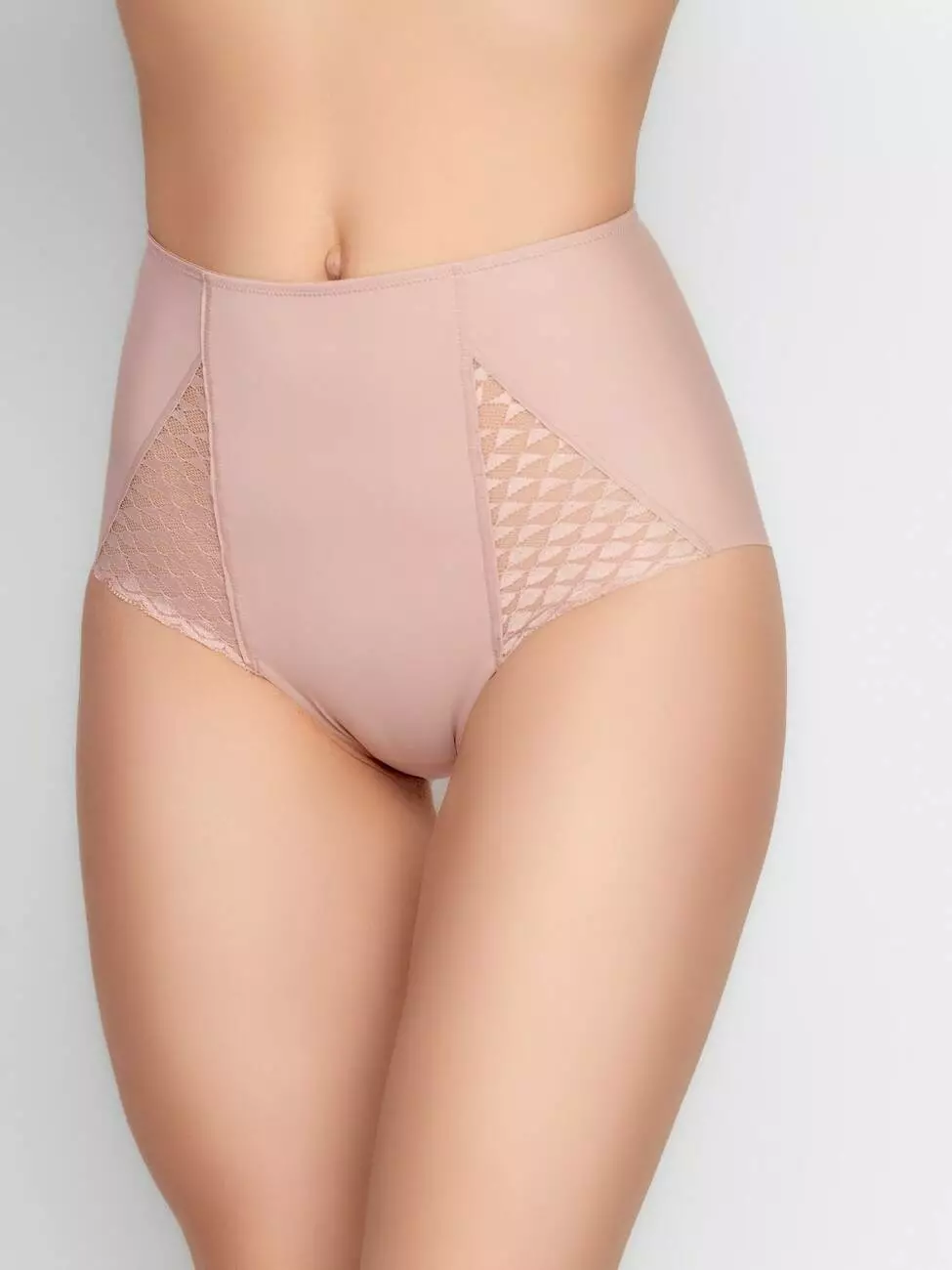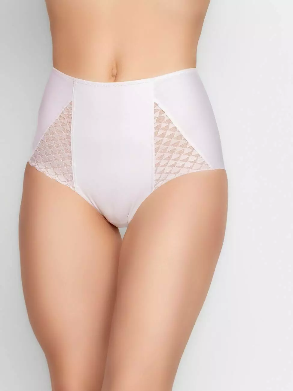 Трусы: закрытая гладкая утяжка с кружевными вставками.
